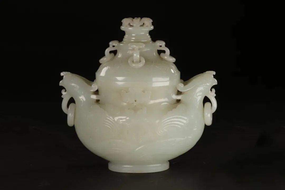 白玉雕双凤六环壶