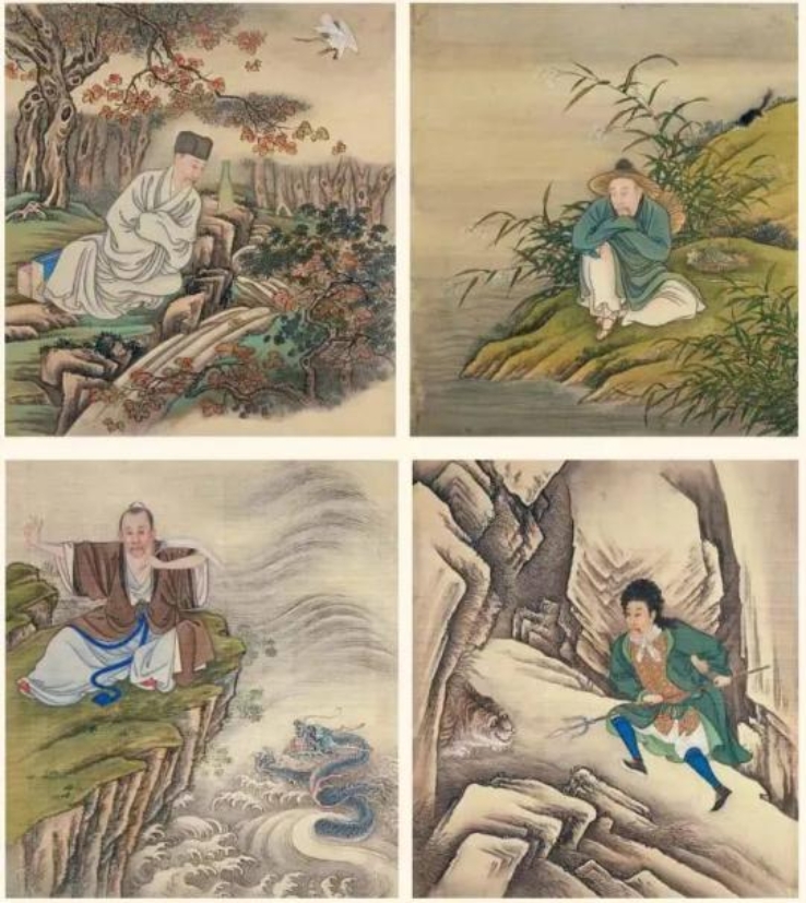 有的可能是画庄周《秋水》,有的则写米芾题壁,可他们却带着鹿鹤同游。有的似是蒙古王爷,静坐于山丘上,旁边一只小兔却回望着他,不知是人待兔,而是兔待人。有的似是“番王”,手举桃实,本应是猿猴献果,却反成了果献猿猴。其变装,或为行脚头陀,或为入定高僧,或为降龙罗汉,或为刺虎英雄,如此等等,不一而足。这些都应是胤禛的立意,而非画师能自作主张的。