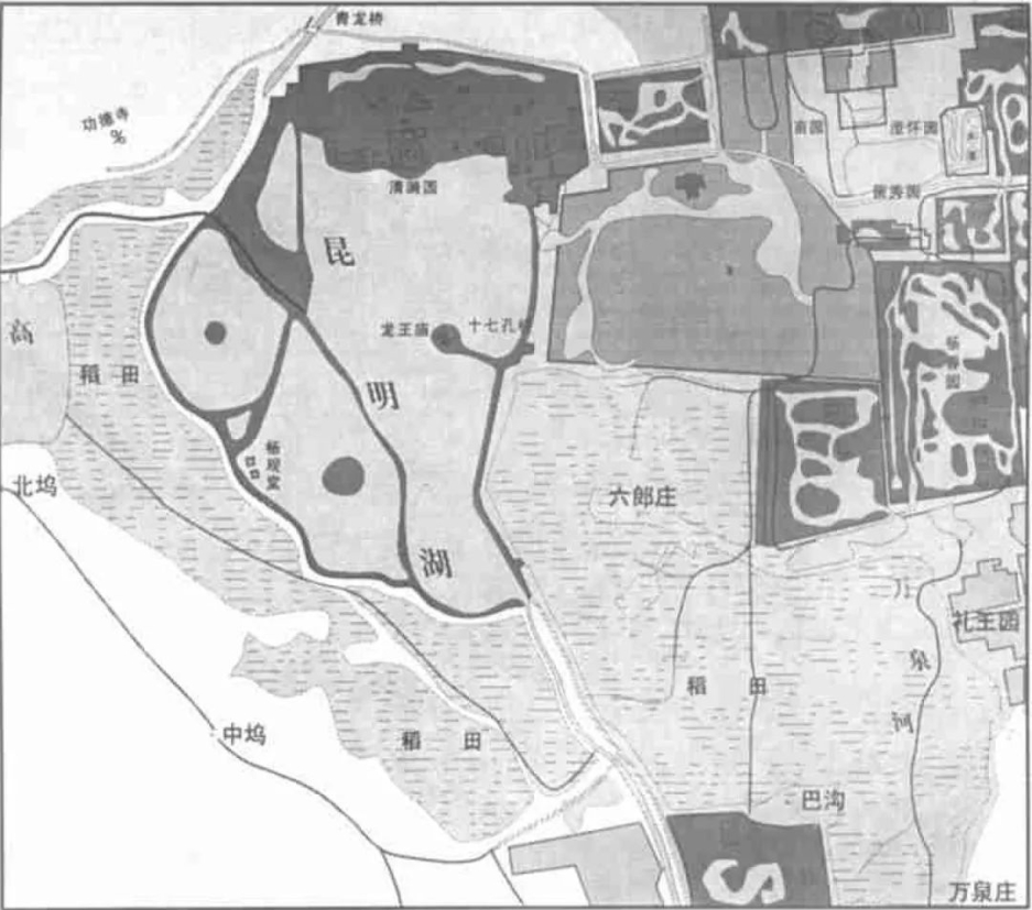 图2 清代颐和园周围的水田