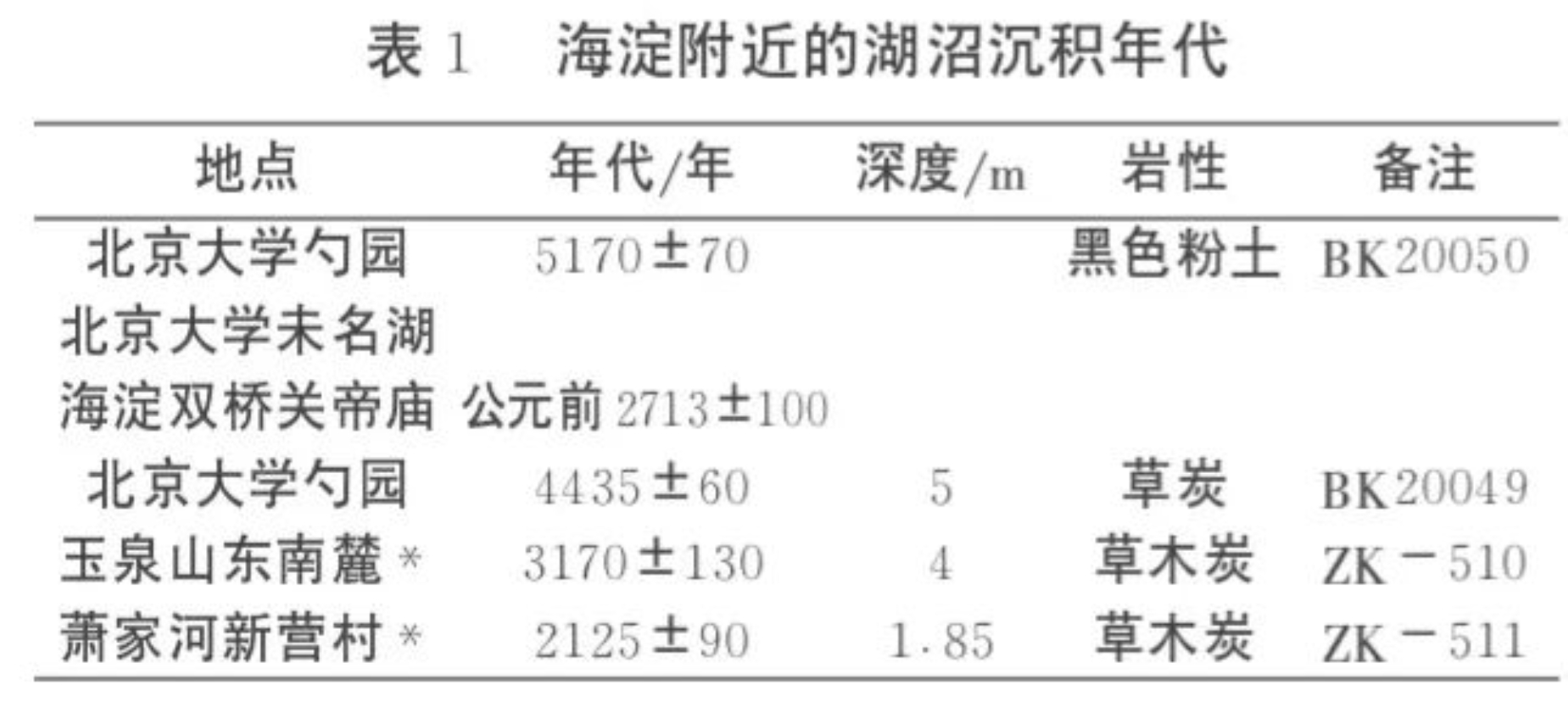 注:带*号者引自中国社会科学院考古研究所14C实验室、国家地震局地质研究所14C实验室编《北京地区一批地质样品的14C年代测定》,《地质科学》1980年第2期。距今年代以1950年为基准计算。