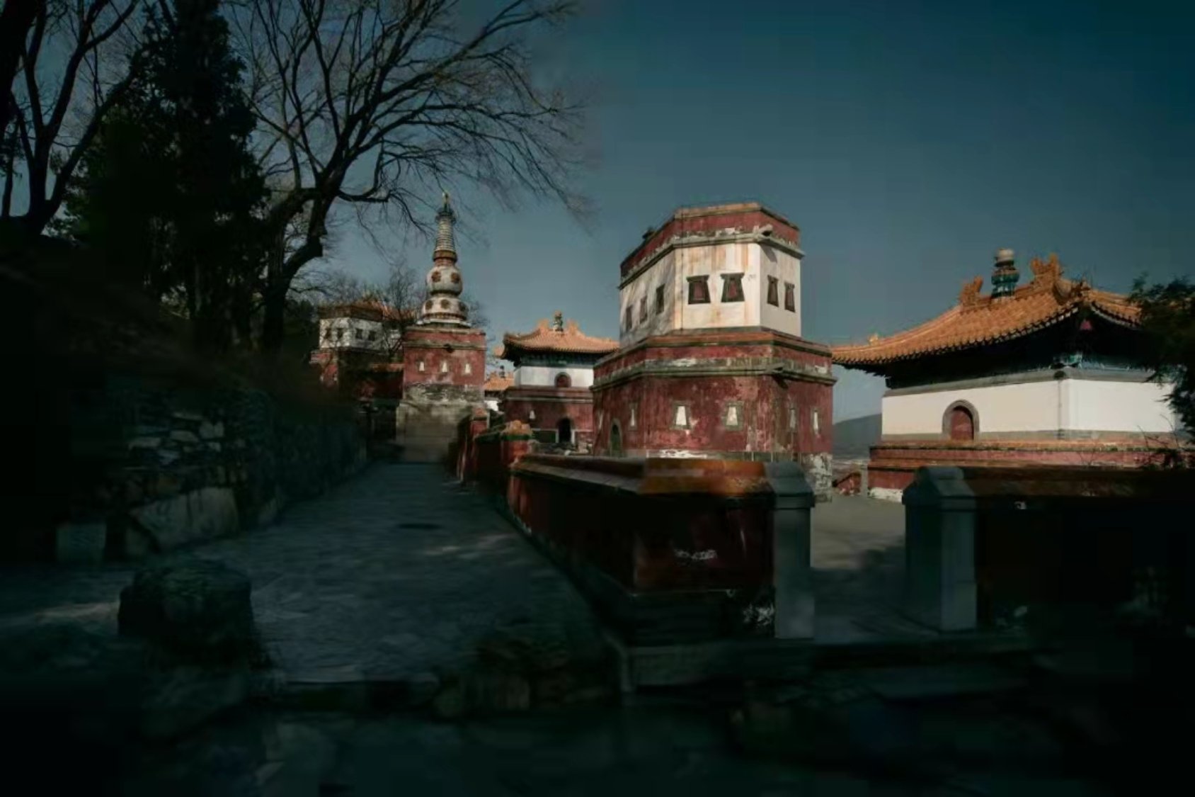 根据结构形式的不同可将此次修缮部分的建筑分成两类,一是传统木构建筑,包括香岩宗印之阁、山门殿、东西值房共4栋;二是砖石混凝土结构建筑,包括四大部洲、八小部洲、日月殿、四色塔共17栋。