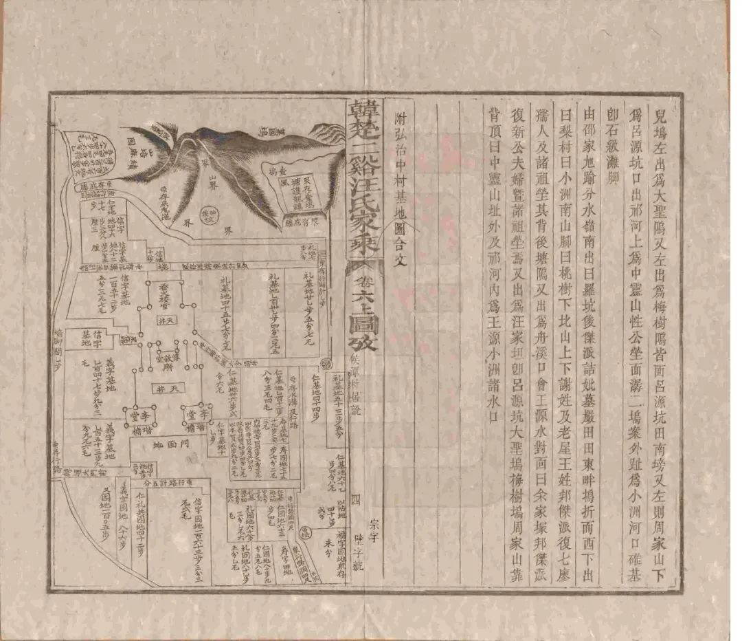 但也有少量家谱将村图谱中其他位置,如清嘉庆年间《清华胡氏文敏公宗谱》十卷,村图位于卷三,同治年间《安徽方氏宗谱》的卷末囊括了各派基迹图。