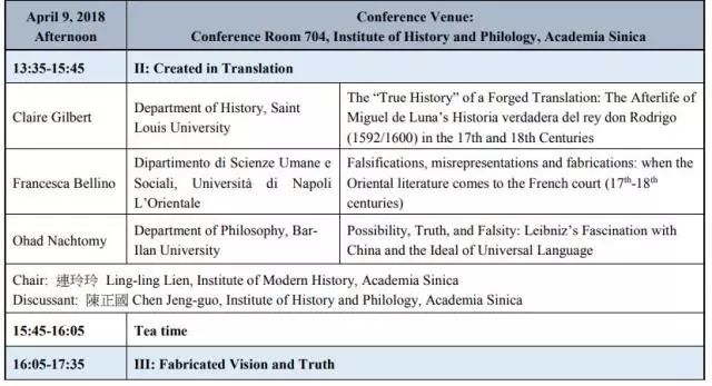 中国台湾中央研究院近代史研究所「近代早期的謬誤、偽作與知識生產:從明清中國到全球史的比較視野」國際研討會