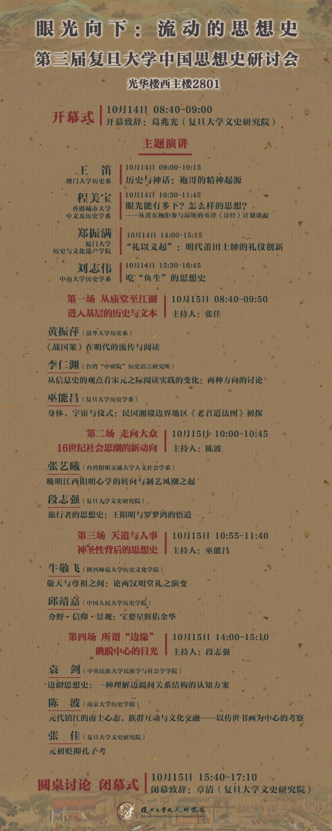 活动预告┃“眼光向下:流动的思想史”——第三届复旦大学中国思想史研讨会