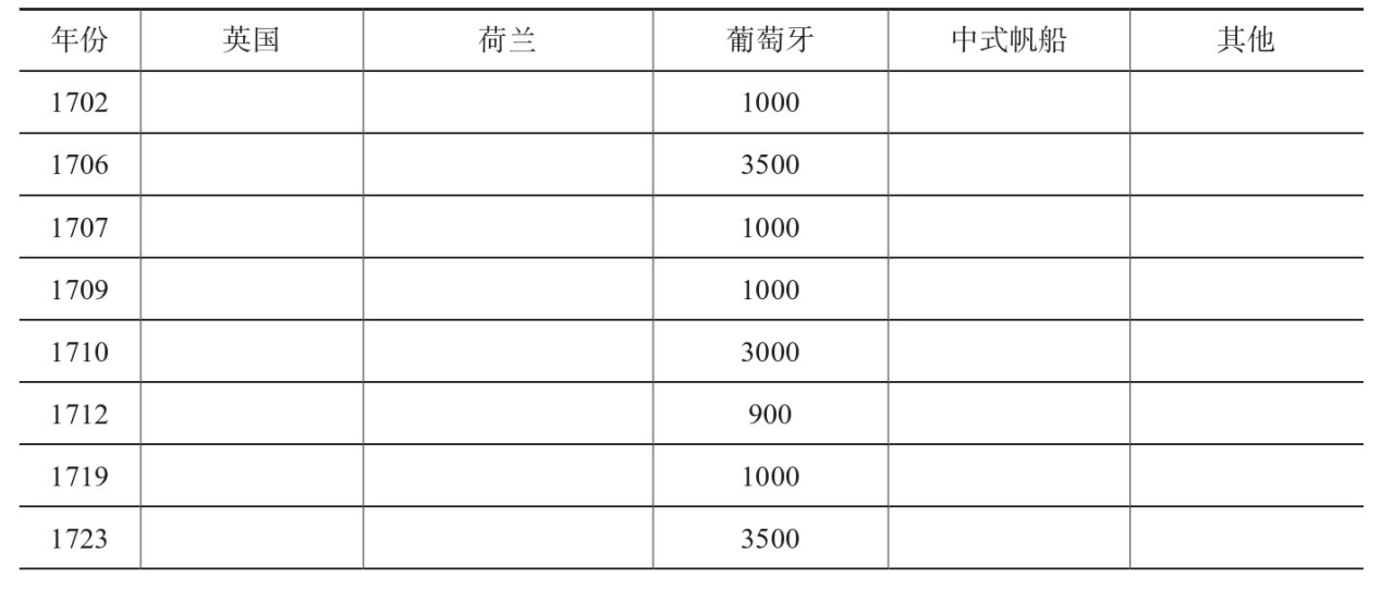 18世纪各国输入广州香木数量见表1。