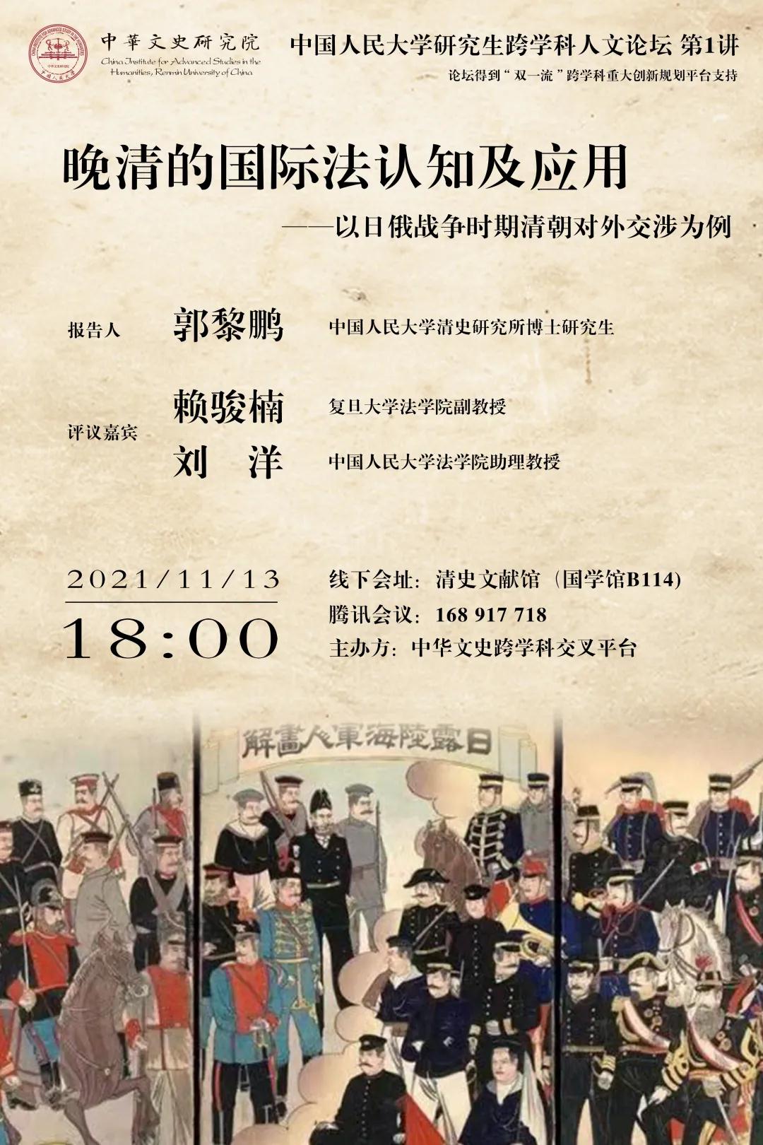 1904年日俄战争爆发后,清廷上谕“局外中立”并颁布了《局外中立条规》,这意味着“中立”这一极具国际法意义的外交政策正式成为清政府的大政方针,清朝官员也开始依据中立法展开对外交涉活动。本次报告将聚焦“周生有案”和“反驳俄国指控案”,探讨清朝官员对“中立法”的使用情况,并在此基础上理解清廷在“文明化”趋势下维护国家权益的尝试。