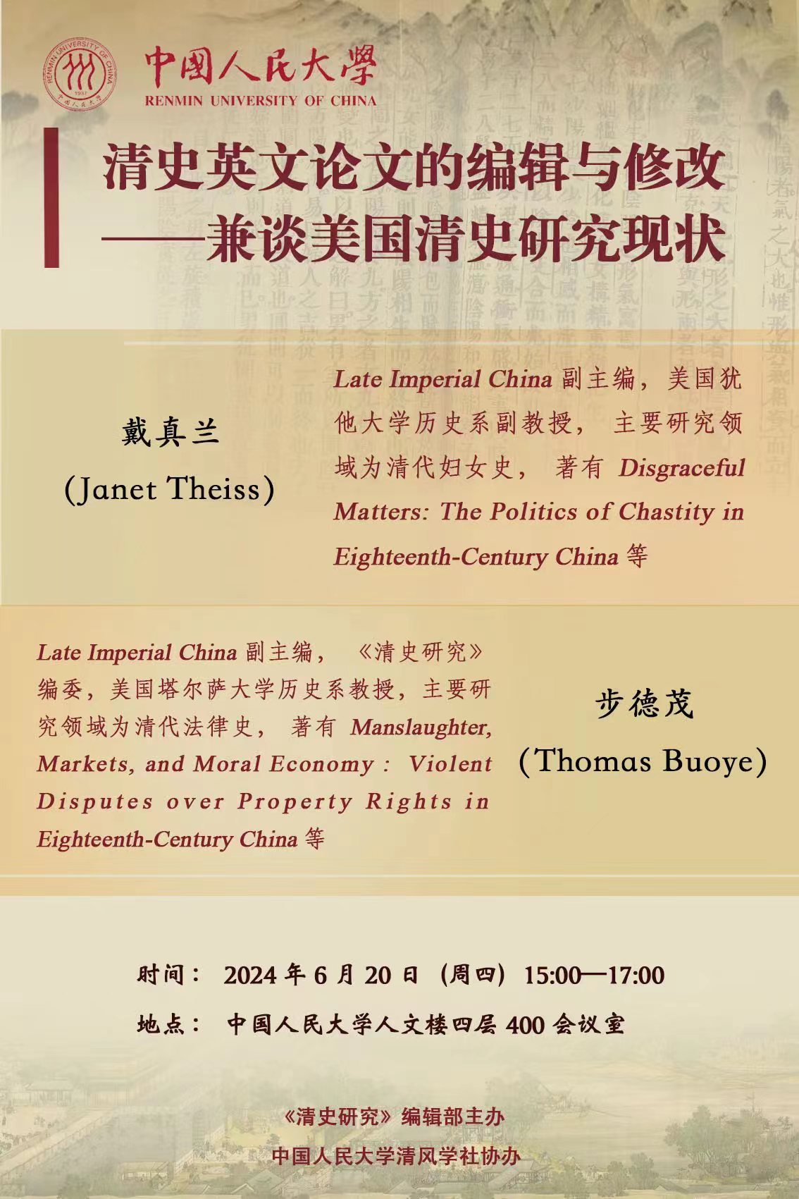 讲座预告:清史英文论文的编辑与修改——兼谈美国清史研究现状