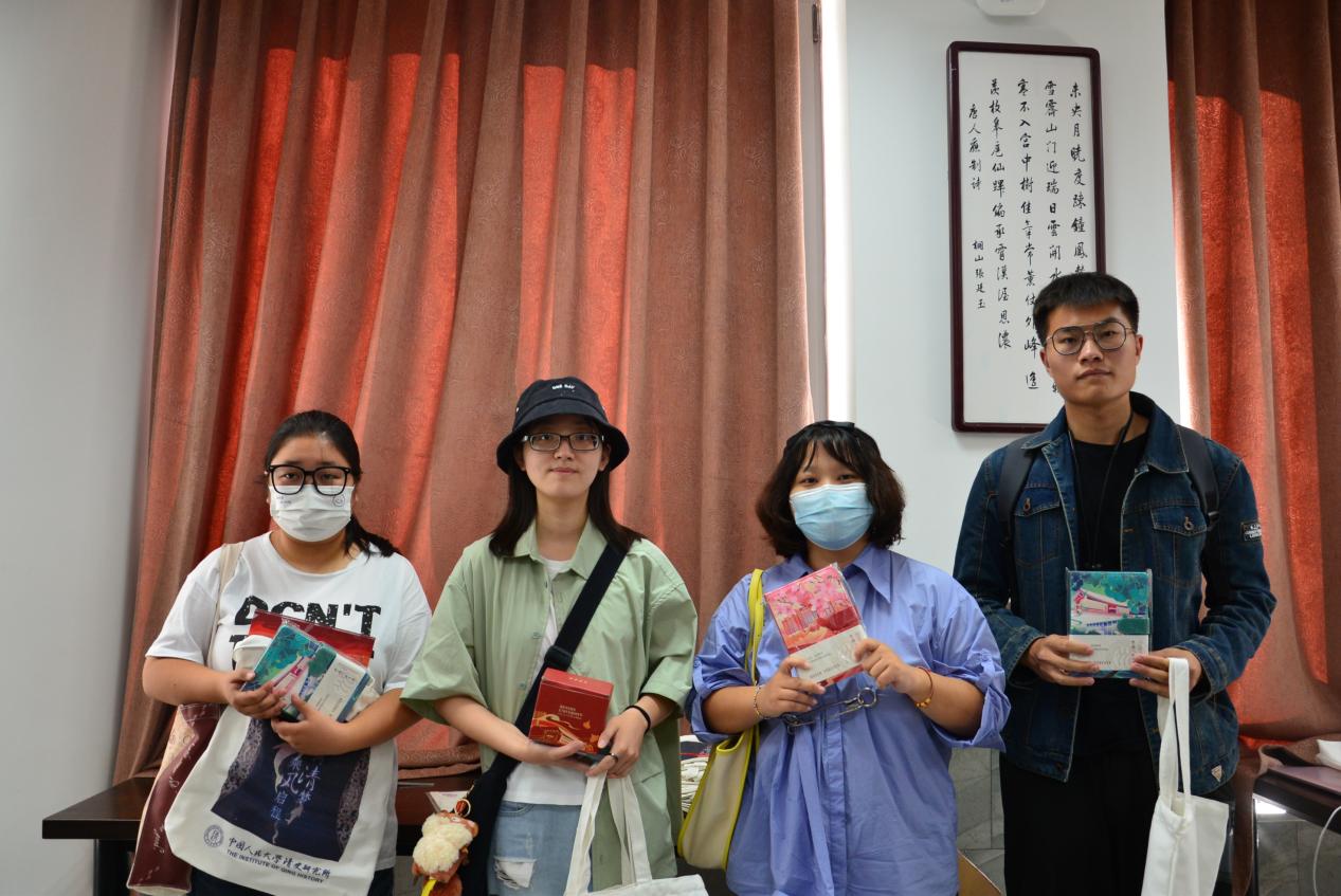 其后进行的抽奖环节中,有5位同学获得了精心准备的文创奖品,并合影留念。最后,胡恒老师总结本次见面会,再次回顾清史所大家庭温暖融洽的氛围,并祝福同学们能够取得良好的成就。