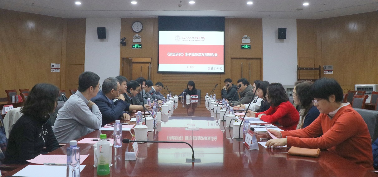 会议于1月9日上午在中国人民大学逸夫会议中心第一会议室召开。《清史研究》编委会主任黄兴涛教授向到场嘉宾致欢迎辞,之后由副主编萧凌波就刊物概况及近年来的办刊进展进行汇报。中国人民大学期刊管理中心副主任陈骊骊对刊物取得的成绩表示肯定,并对未来发展提出了期许。中国社会科学杂志社史学部主任晁天义编审从自身丰富实践经验出发,提出史学类学术刊物在选题方面应秉持的四个原则,即注重时代性与学术性的统一、宏观与微观研究视角的统一、理论性与实践性的统一、传承性与创新性的统一。中国历史研究院成果评价处负责人倪梁鸣介绍了2023年郭沫若中国历史学奖首次设立的“优秀史学刊物奖”(《清史研究》荣获“优秀奖”)评选情况,并特别肯定《清史研究》在坚持办刊导向、立足中国立场、拓展国际视野、培育青年学人等方面所做的努力。中国知网中国科学文献计量评价研究中心副主任汤丽云和中国人民大学书报资料中心的张敏老师则分别从提升刊物评价指标以及增加论文转载等视角,对《清史研究》的工作提出建议。