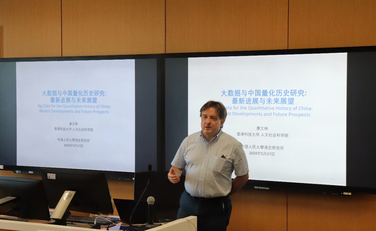 2024年5月17日下午,“数字人文&清史研究系列演讲”在中国人民大学立德楼502教室举行。香港科技大学康文林教授应邀作了一场题为“大数据与中国量化历史研究:最新进展与未来展望”的精彩讲座。
