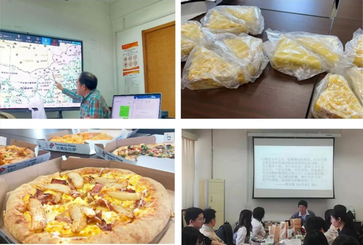 午餐也是精读班值得期待的环节,师生围坐在一起交流讨论,丰富了午餐时间。清风学社为大家制定的菜单丰富多样,包括三明治、披萨、炸鸡、汉堡、泡菜饼、鸡蛋卷、烤梨等种类,后续也将尝试一些中餐套餐,在此特别感谢所里对精读班的经费支持!