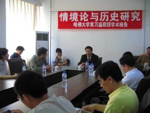 2007年6月6日,哈佛大学黄万盛教授应邀来到清史研究所做学术报告,主题是“情境论与历史研究”。 报告会由清史所常务副所长黄兴涛教授主持,副所长夏明方教授、曹新宇副教授、曹雯和刘贤博士等参加了报告会。