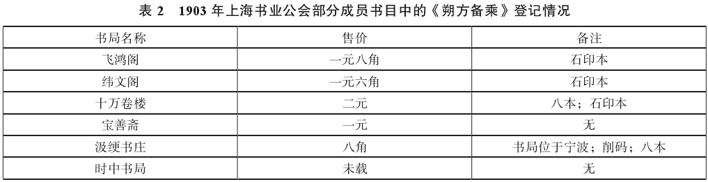 除此之外,周振鹤所编《晚清营业书目》也收录了部分未于报纸上登载广告,但书单中含有《备乘》的书局信息,整理为表2。