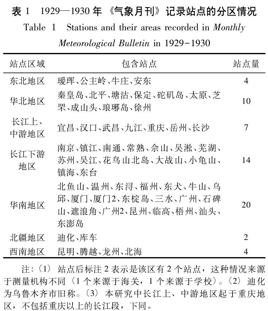 1929—1930年极端冷冬事件发生在民国时期,其研究相对较少。郝志新等(2011)基于文献资料,在识别过去400年极端冷冬事件时指出1929—1930年出现过2年的极端冷冬连发事件,钱恒君等(2019)基于湖南马尾松树轮样本重建了1854年以来的冬季极端低温,从自然证据上证实了1927—1930年间发生了冷冬事件。《中国气温等级图(1911—1980)》(气象科学研究院天气气候研究所,1984)一书中指出1929年11月到1930年1月,中国地区有大面积的寒冷事件,其中1月份的寒冷程度、寒冷范围都达到相对极端的程度。除此之外,当时的报刊报道中也能看出本次冷冬事件的极端性:例如《大公报》1930.1.4《谁信有此!!!慈母不忍听儿啼深夜活埋雪中》一文记载:“(母)以生存无望,深夜时将子活埋深雪之中,其母亦于次日冻死。……日来天气严寒异常,水井亦结坚冰,屋内温度降至华氏表20度,树上乌鸦麻雀……往往坠地而死……”。总结多个资料源可以得出,1929年11月到1930年2月这个冬季(下称本次冬季)中国地区发生了极端严寒事件。但现有研究中,本次冷冬的极端程度缺少定量表达,且具体时空范围刻画不足。故本研究对本次冬季极端气候事件进行深入分析,通过挖掘时段内的器测记录与报刊记录,对本次冷冬的极端性进行定量表达,重建其空间范围与时间过程,并讨论本次冷冬的可能影响机制。研究结果可以丰富对本次极端冷冬事件的认识,也可为气候模式模拟提供参照与参数校订的基础。