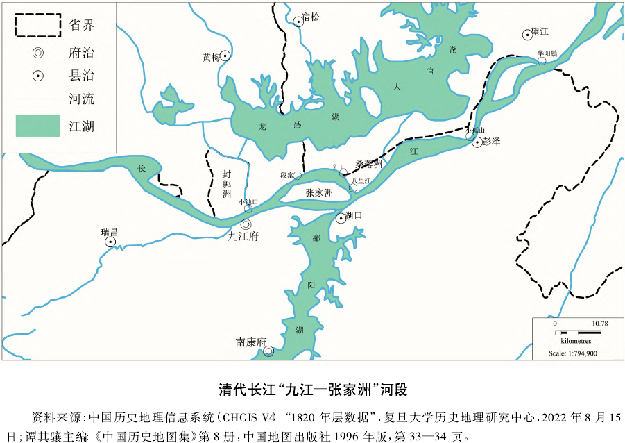 上述新淤洲地争垦案不过是该滨水区域历史的一个缩影。这个地区即历史文献中时常提及的“桑落洲”,主要位于今江西省九江市柴桑区江洲镇、安徽省宿松县汇口镇与湖北省黄梅县刘佐乡等三省交界地带,地形上属典型的滨水低地。该洲在历史上受到长江河道迁徙的影响,面积、位置等均处于动态变化中,具有很强的不稳定性。张修桂对长江武穴至湖口河段,尤其是桑落洲、张家洲汊道的河床演变,进行过长时段的历史考察,基本勾勒了该区域历史地理演变的大致轮廓。林承坤则注意到人类活动对长江河道与沙洲形成与演变的影响,如沿江筑堤与围垦,把原来自然的河道限制在人工堤防里流动。此外,徐建平在讨论民国时期鄂皖赣三省边界调整与江堤维护问题时,发现历史上河道与沙洲的自然演变造就了行政边界犬牙相错的社会现象。不难发现,人与自然是“你中有我,我中有你”的关系,二者彼此深度嵌入在对方的体系之中,制约与改造并存。