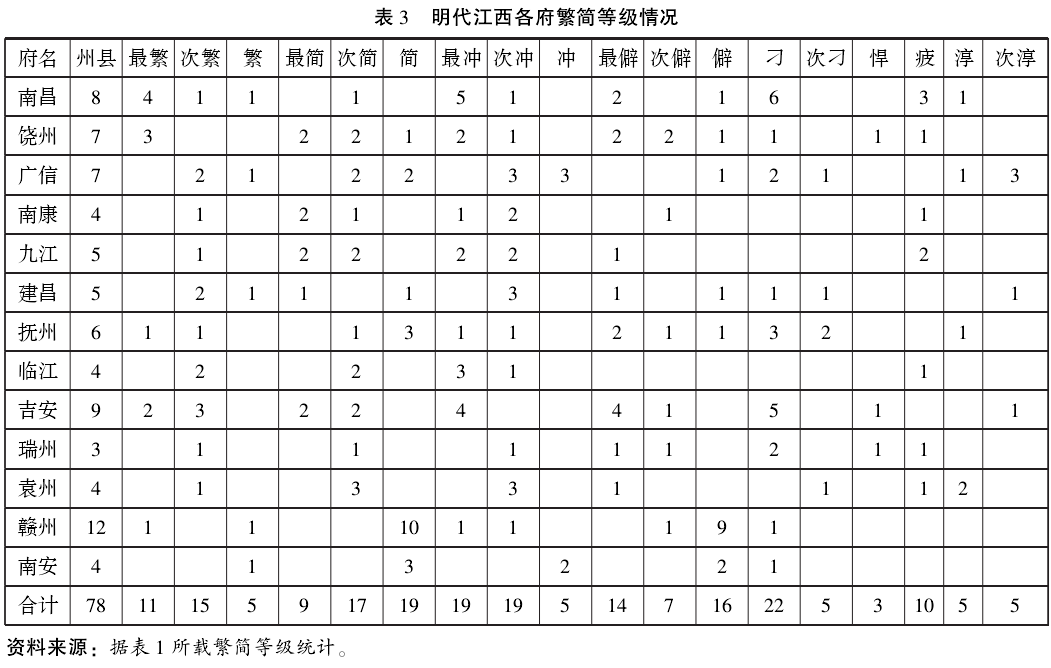 三、明代江西政区繁简等级的统计分析