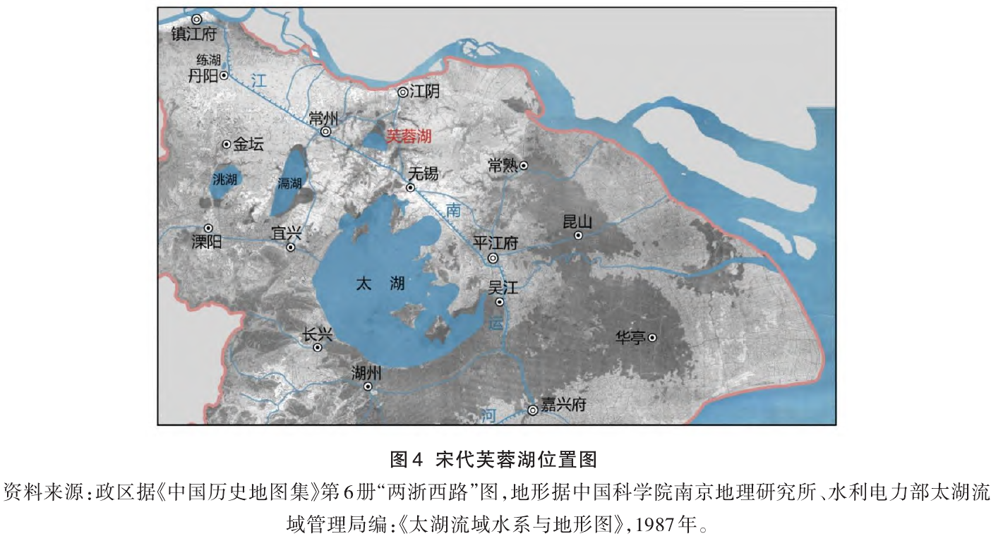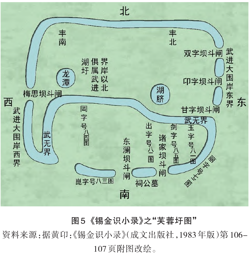 芙蓉圩位于今江苏无锡、武进、江阴之间,系由古芙蓉湖围湖成田而来。芙蓉湖原为太湖流域古代第二大湖,其围垦经历了漫长的历史时期,从战国后期开始,至明代才最终全部围湖成田(图4)