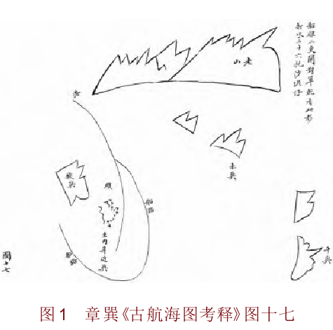 正如黄叔璥在《台海使槎录》中所指出的一样:“舟子各洋皆有秘本”,中国古代航海实际使用的地图在舟师等小范围内传播,导致传世数量较少,很少进入后世的研究视野。其形式与描绘重点与郑若曾等士人所主持编绘的地图存在较大不同,很可能是较为稚拙的“山形水势地图”(如章巽《古航海图考释》中海图〔见图1〕和近年发现的耶鲁大学所藏古海图)或者更路簿,而非现存数量远远超过“山形水势地图”和更路簿的长卷式海图,这些长卷式或其变体——册页式海图展示了沿海广大地域的宏观形势,是士人和官僚群体所需要掌握的,正如陈伦炯在《海国闻见录》自序中所表现出的对“山形水势地图”使用群体的不满:“见老于操舟者,仅知针盘风信,叩以形势则茫然,间有能道一二事实者,而理莫能明”。将不同绘制、使用群体的地图作品混为一谈,导致我们忽略了传统时代或者转型时期地图绘制的“个别性”与“不一致性”。