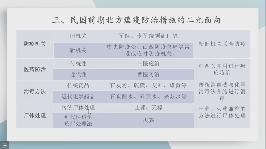 第六位作报告的学员是来自山西大学历史文化学院的董虹廷博士,报告题目为《民国前期北方瘟疫防治的二元面向(1912—1927)》(见图18),报告主要分为五个部分。