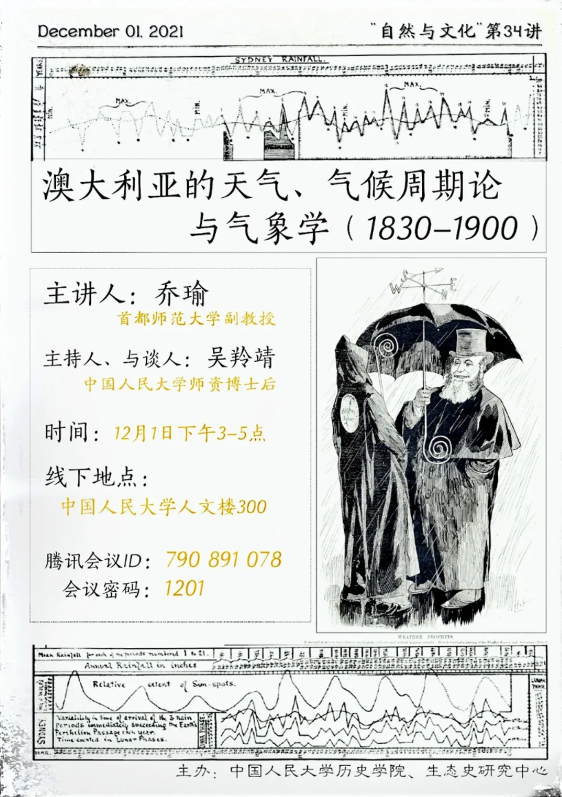 【讲座预告】“自然与文化”系列讲座第三十四讲 | 澳大利亚的天气、气候周期论与气象学(1830-1900)