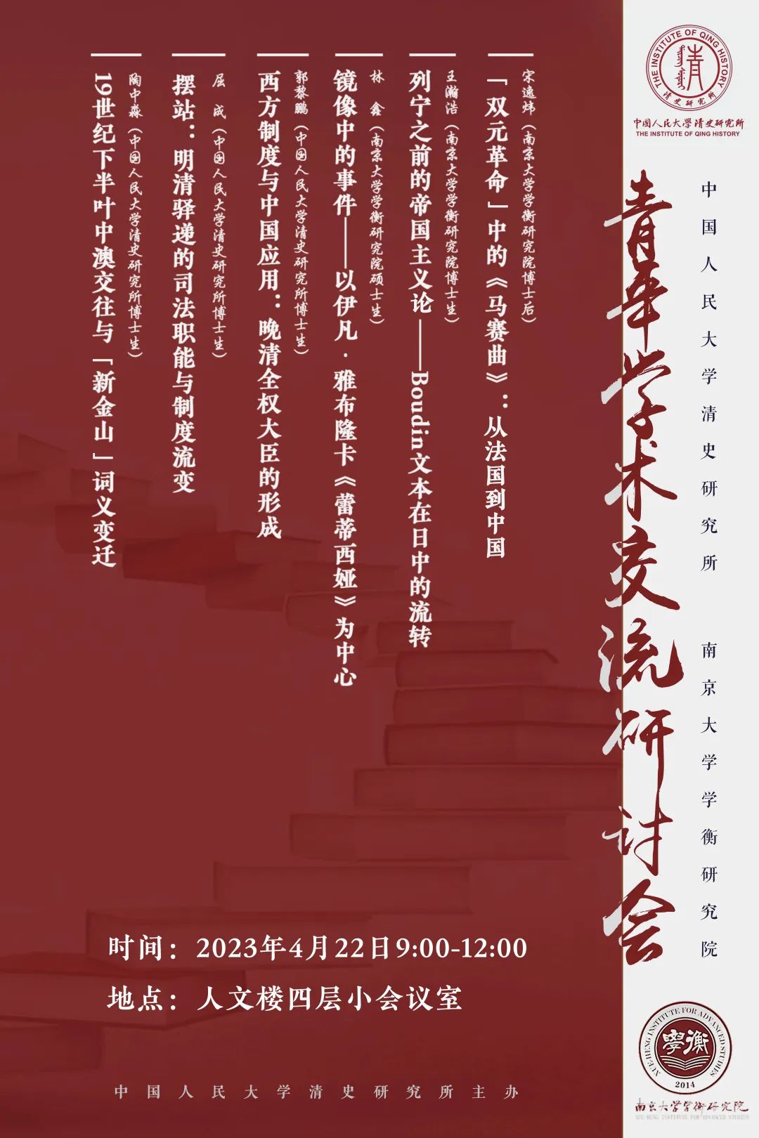 中国人民大学清史研究所 、南京大学学衡研究院青年学术交流研讨会预告