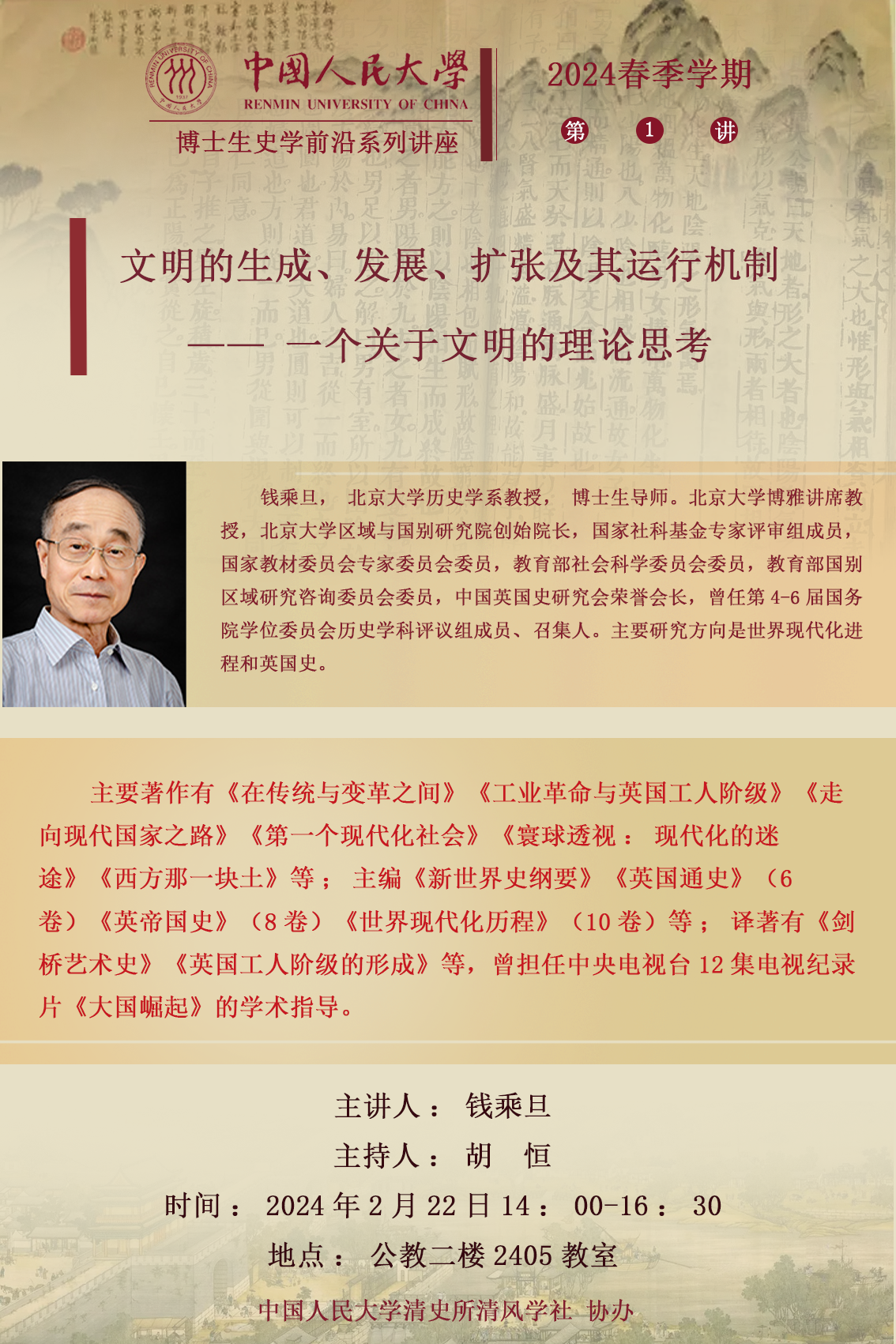【史学前沿第1讲 预告】钱乘旦:文明的生成、发展、扩张及其运行机制——一个关于文明的理论思考