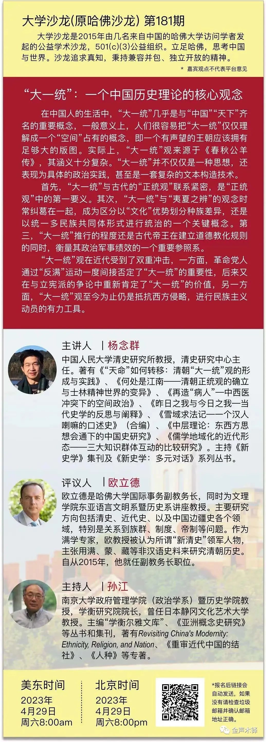 【沙龙预告】杨念群、欧立德、孙江:“大一统”:一个中国历史理论的核心观念