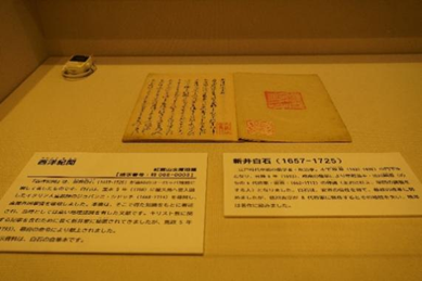 江户幕府时期,日本对外通商口岸仅限于长崎、对马、萨摩、松前四地。第八代将军德川吉宗执政时期放宽了进口书籍的限制,各类海外知识不断传入日本。该展览重点展示18世纪来日的外国使节文书、舶来典籍,以及江户时代日本研究海外的著作,可以之管窥跨海而来的新知识是如何被江户时代的日本人所接受的历史过程。主要展品有《西洋纪闻》《朝鲜人来朝之记》《清俗纪闻》《御书物方日记》《北夷分界余话》《西洋钱谱》等。