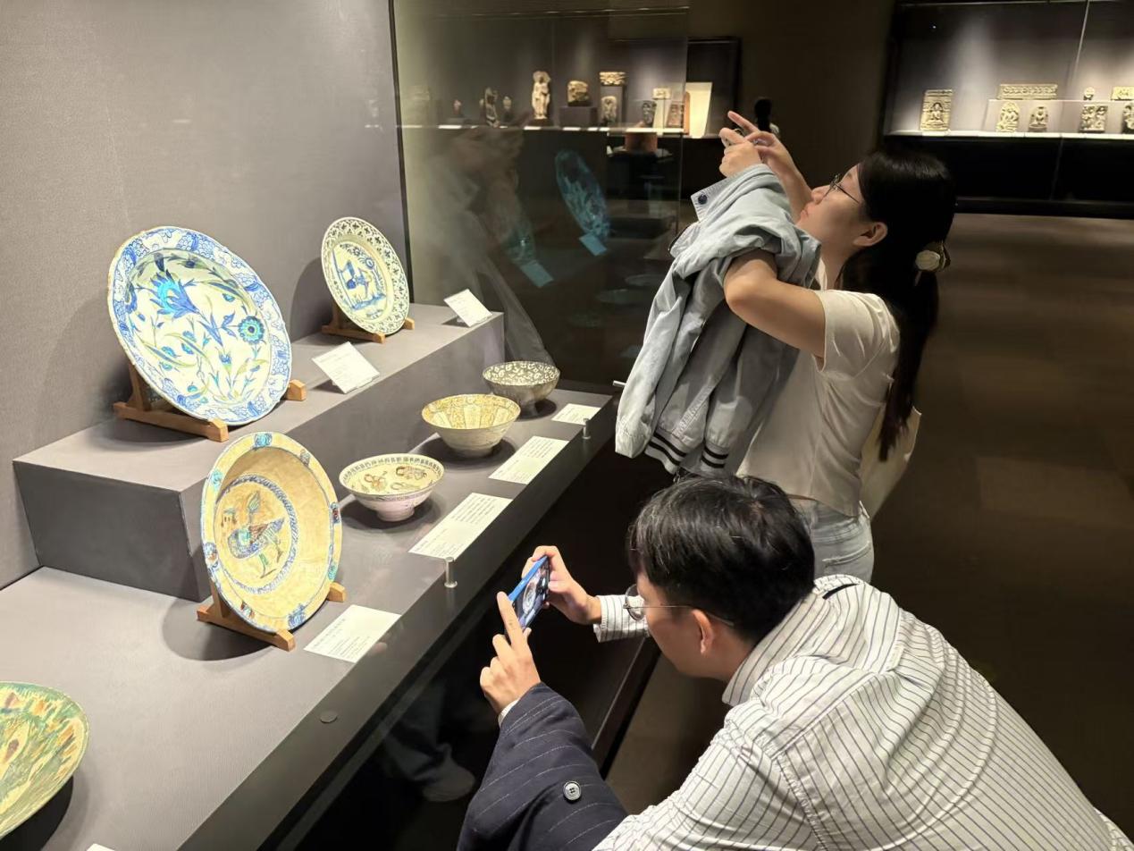 (参观东洋馆收藏的叙利亚阿尤布王朝时期展品“白釉刻线彩釉女面鸟身纹钵”)