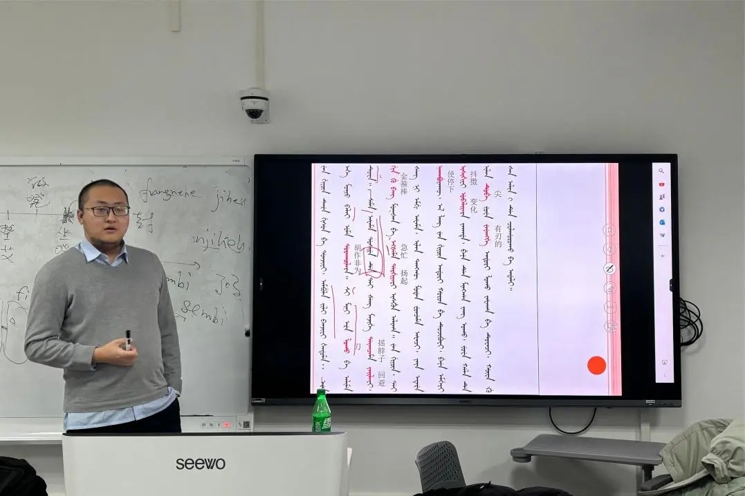 少数民族语言是清史、专门史领域的重要研究工具。为提升同学的满文文献利用能力,助力产出更好的学术成果,清风学社特举办“清风满语文献班”,至今已成功举办8期。2023年秋季学期,第八期满语班开课,继续聘请有着11年满语文教学经验的2022级专门史博士生唐硕主讲,共举办32次、112学时。中国人民大学、北京大学、清华大学、中国社会科学院大学等知名高校的本、硕、博各专业共计70余人踊跃报名,最终有13名同学获得结课证书。在总结满语班成功经验的基础上,学社充分考虑同学学习其他少数民族语言的强烈需求,于2024年春季学期首次举办“清风古典藏语班”,由2023级硕士生王宇喆主讲,共举办13次、26学时。课程共有70余名在京高校学生报名学习,最终有9名同学获得结课证书,教学效果良好。通过满语班、藏语班的学习,同学们不仅初步掌握阅读少数民族语言文献的能力,扩展了研究视野,提升了研究技能,还深刻学习中国统一多民族国家的历史形成进程,铸牢了中华民族共同体意识。