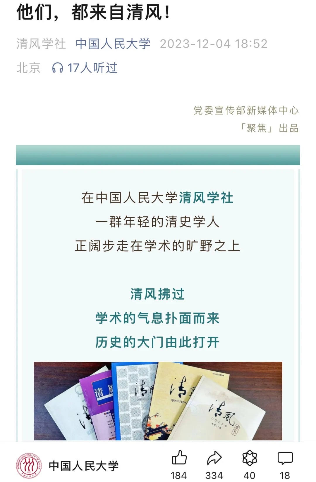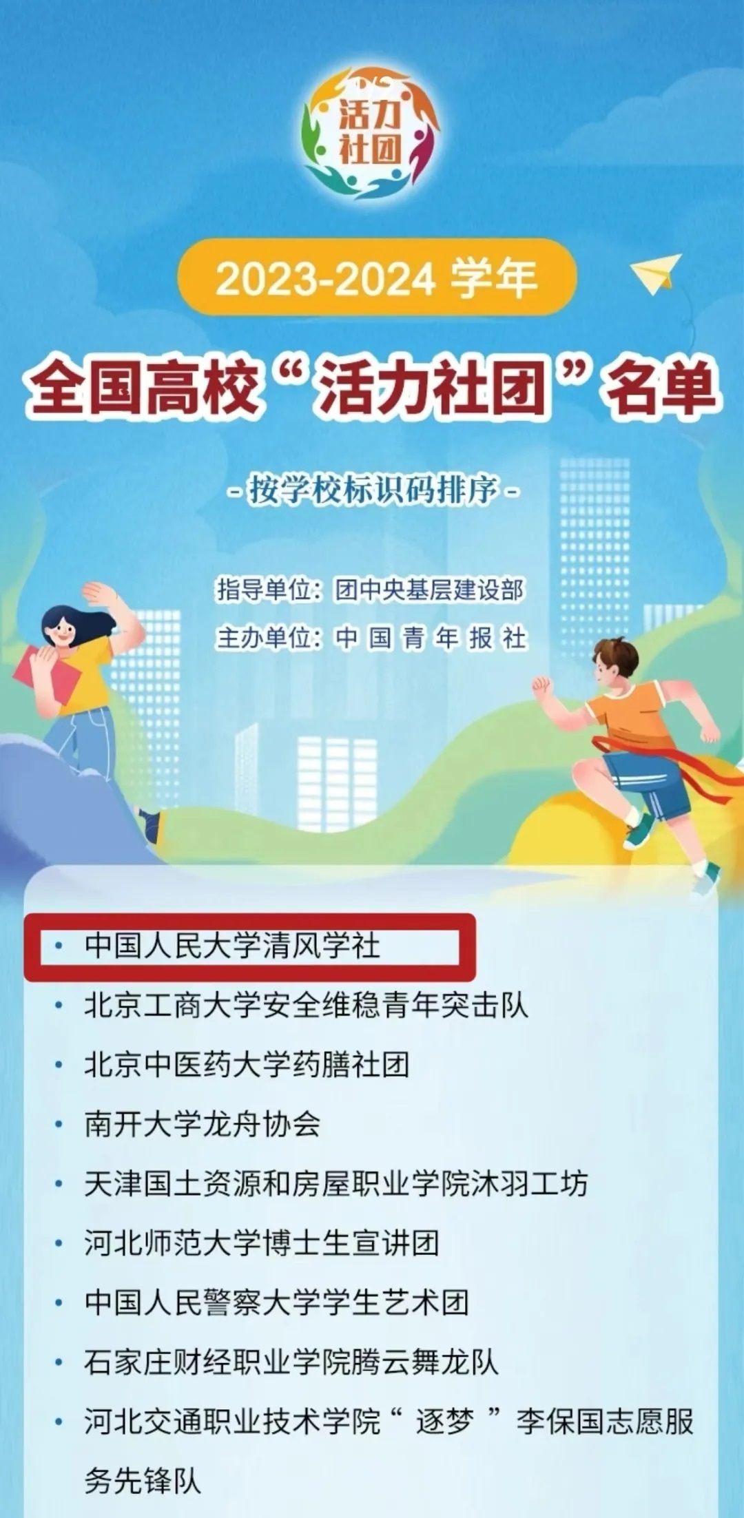 清风学社获评2023—2024学年全国高校百大“活力社团”