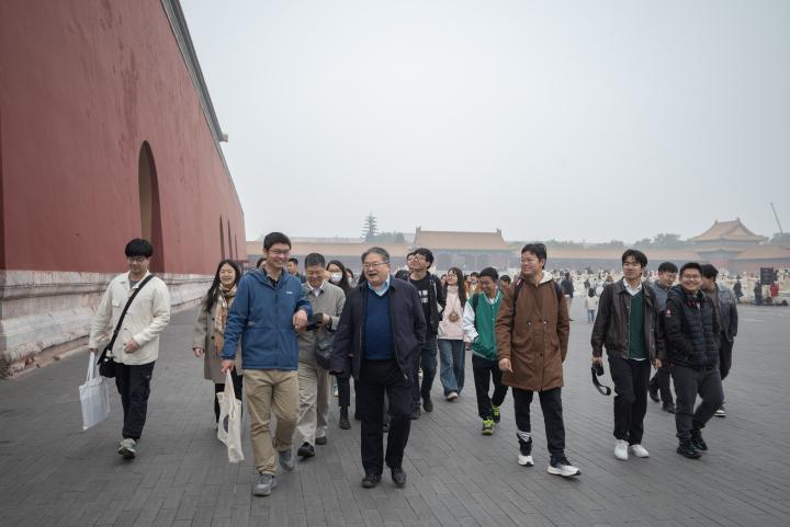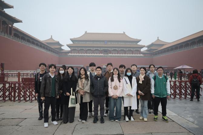 上午7点45分,师生在学校东门“实事求是”石前集合。然后大家一同乘地铁前往故宫博物馆,于9点到达故宫,在午门前合影。