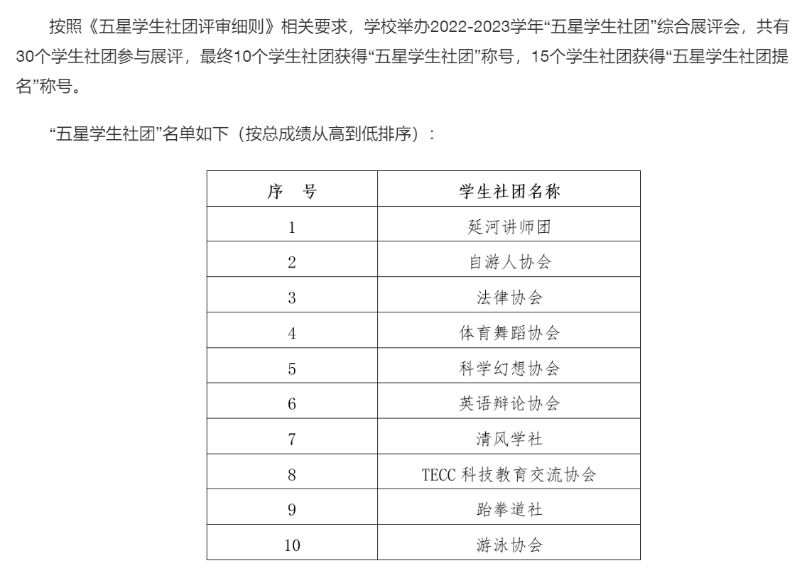 喜报丨清风学社获评2023年“五星学生社团”